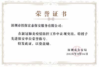 熱烈祝賀我司鐵保宏泰保安榮獲疫情防控工作“先進保安單位”稱號